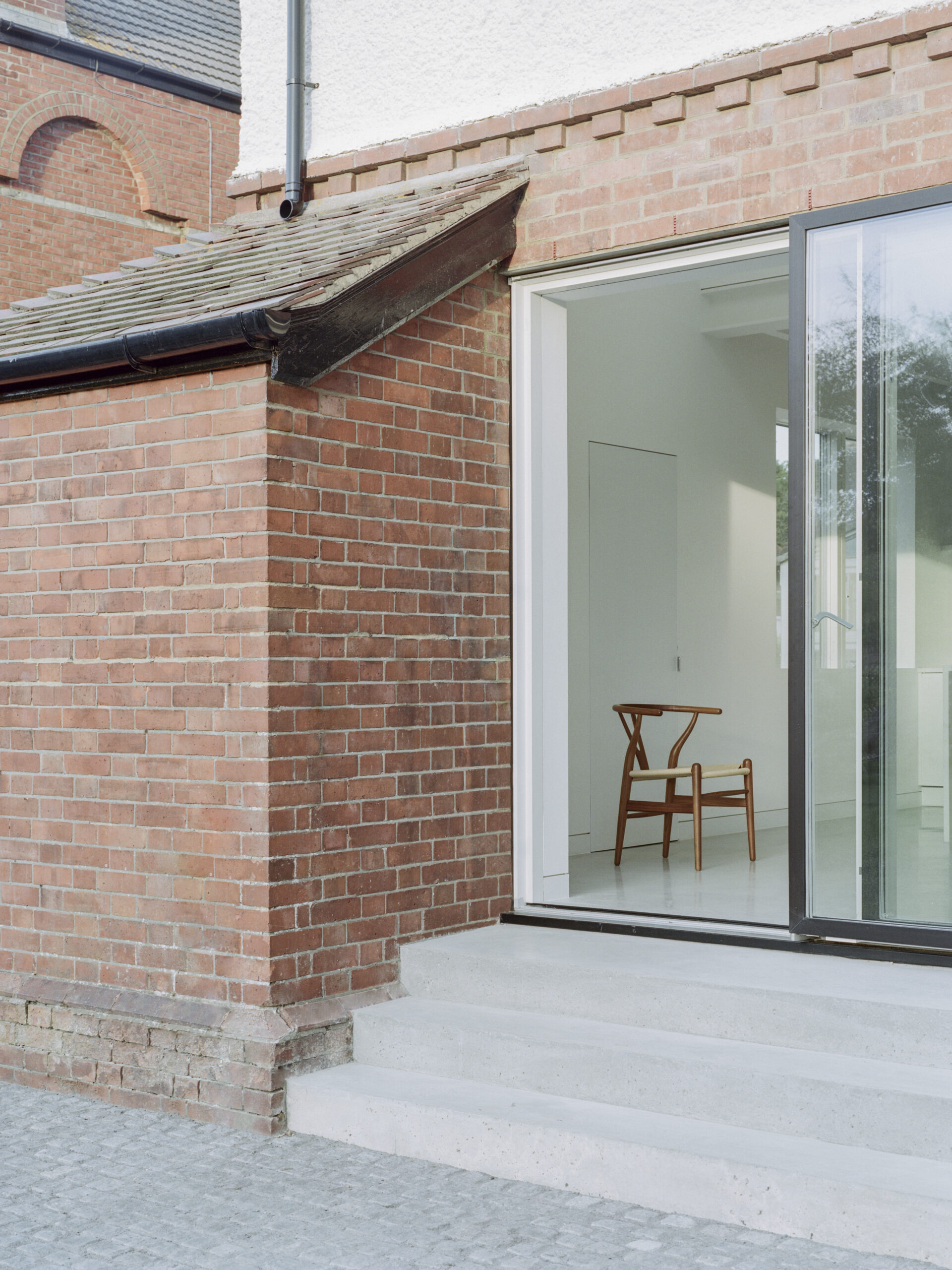 A first-floor balcony looks over the double height space, allowing further playful moments to enhance the idea of interconnection throughout the house. The cleared-out space has an industrial studio feel, with a lot of window perimeter and spectacular views out to Folkestone’s hills.
