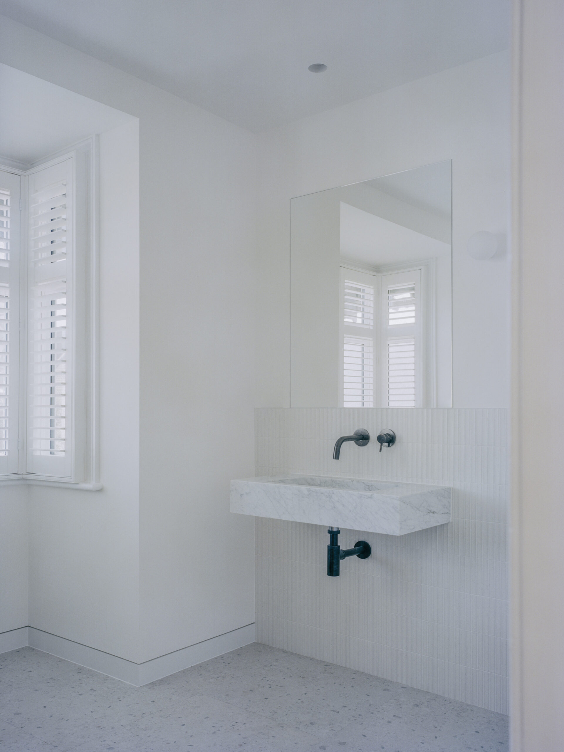 The design reduces the building’s interior into a kind of industrial shell behind its more polite residential exterior. The shell, within which the residents work, live and entertain, makes the interior as open and as high and interconnected as it can be. The double height space was formed by demolishing and relocating an existing bathroom at first floor level, allowing the house to have a certain grandeur to the interior space, complementing the existing Victorian pride from the street.
